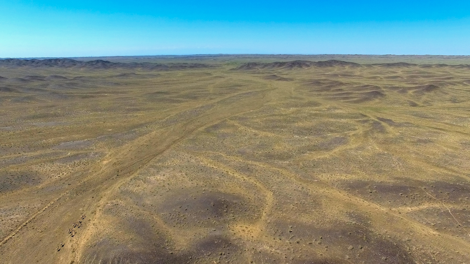 途中根据路牌指示,拐向一处开放式的野生动物保护区。无人机远远看到一群野驴,可惜距离太远(仔细看一下画面的左下角)。