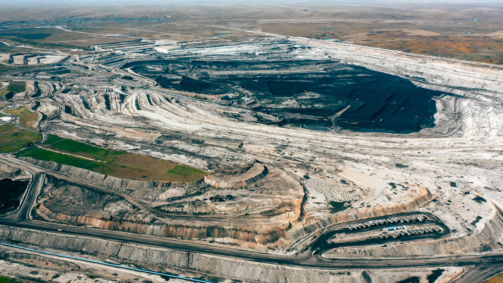 伊敏镇以S202为界,东西两侧截然不同:西侧是著名的伊敏露天矿,年产量可排进全国前五。