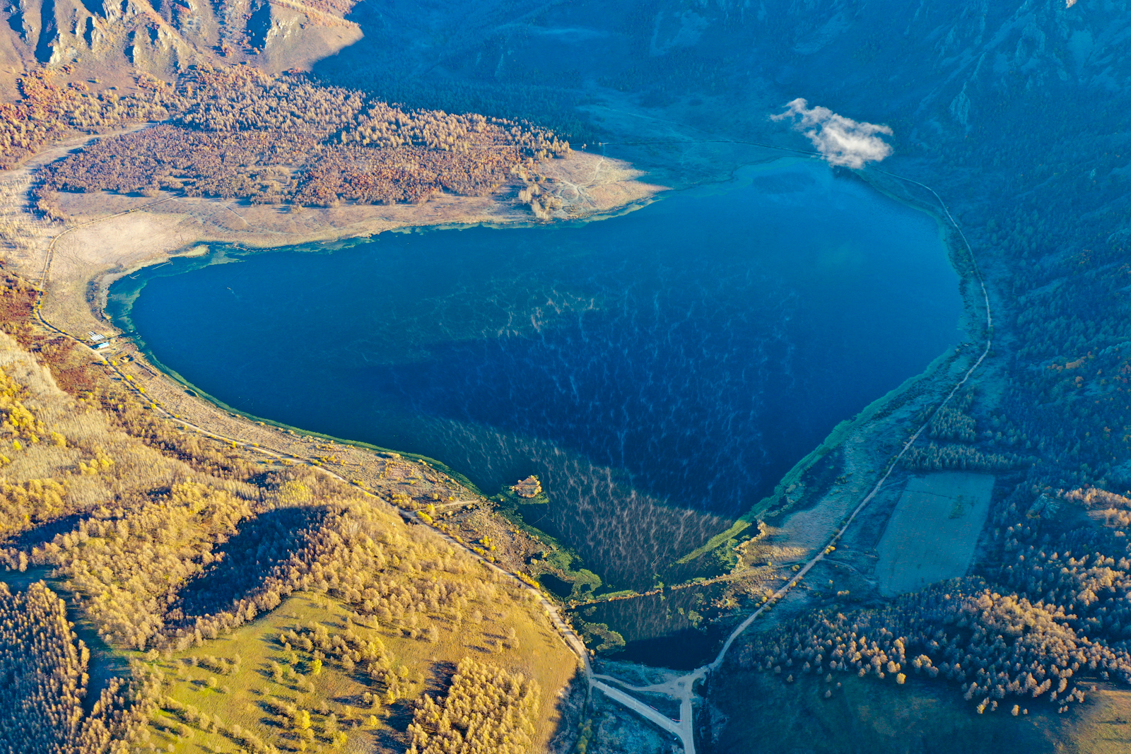 柴河月亮小镇上的同心湖顾名思义,因形状像一颗心而得名。一大早守它的日出,也亲眼见识了水气一点点蒸腾成山腰间的一层雾,感觉像是在煮一锅稀饭。
