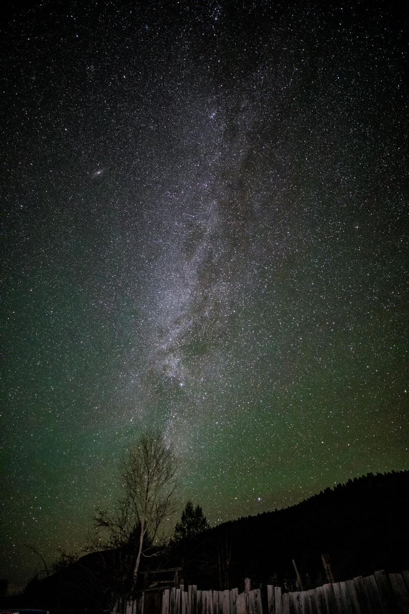 北极村只是一个普通的小镇,隔着黑龙江眺望了一下对面,也没有留下值得一提的照片。返程向西, 到了莫尔道嘎,一看这四颗星的暗夜等级,必须来张星空了。这个季节半夜很冷,我里三层外三层,把带的所有衣服都套在身上,驱车来到小镇的最东边。于是拍到了壮丽的银河。遗憾的是,当时似乎应该把货斗给关上。