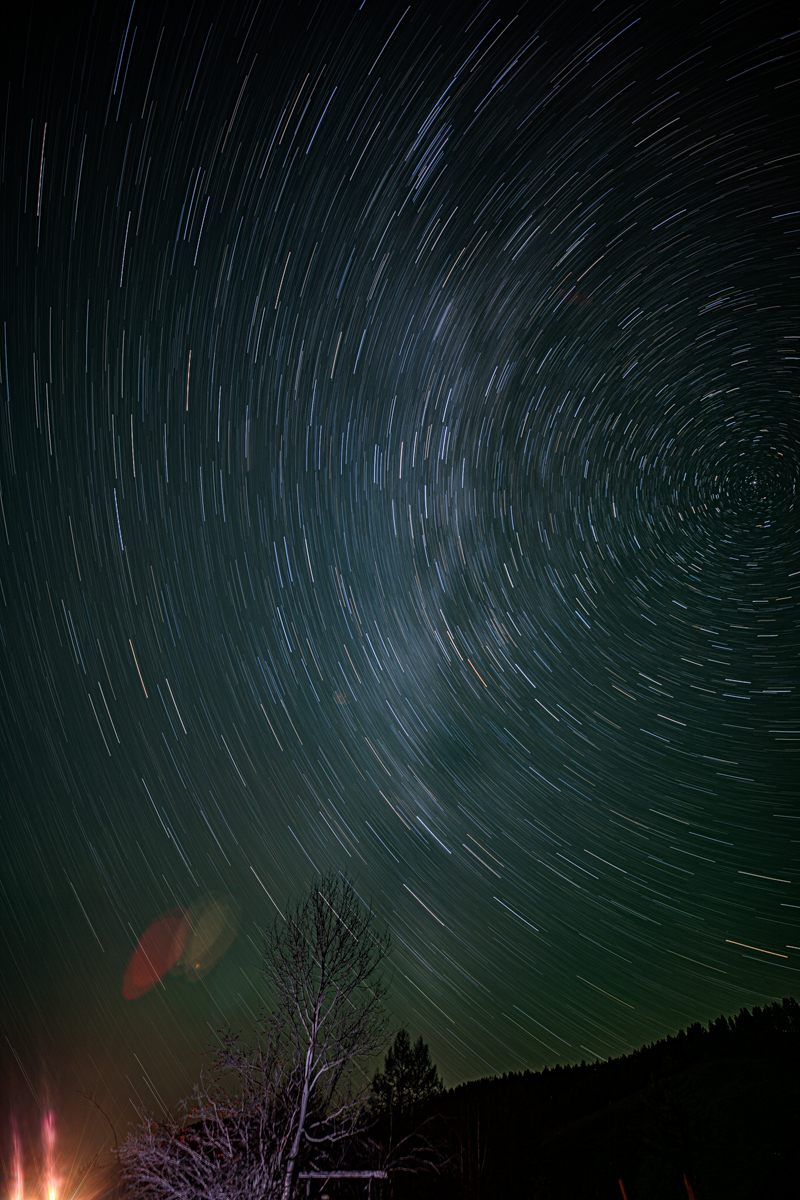 “来都来了”,一不做,二不休,哆嗦着双手拍起了人生中第一个星轨。一次拍摄大概需耗时1个小时,我只有1次机会。运气很好,我竟然成功了,整个镜头已经结上一层厚厚的白霜。
