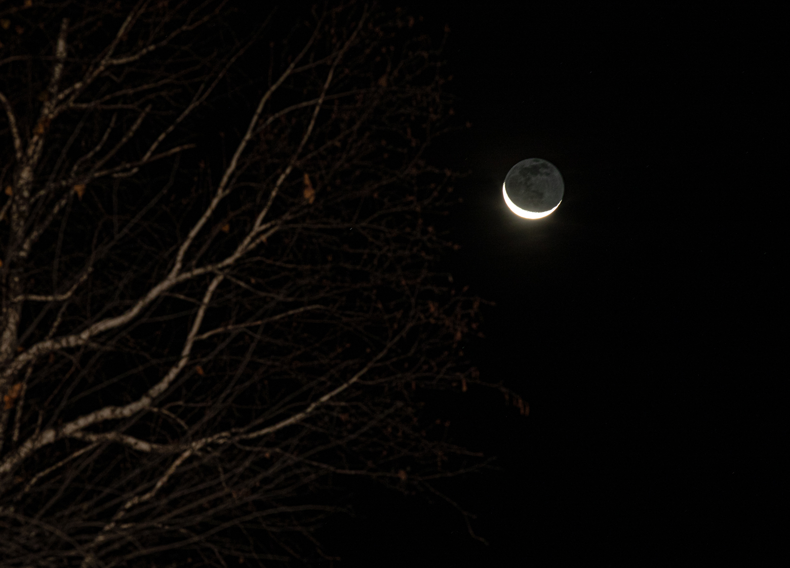在拍星空的间隙,我已经发现这里的月亮竟然可以同时看到暗处的细节。这也佐证了小镇无比纯净的空气质量。趁着还没日出,给它也来一张。