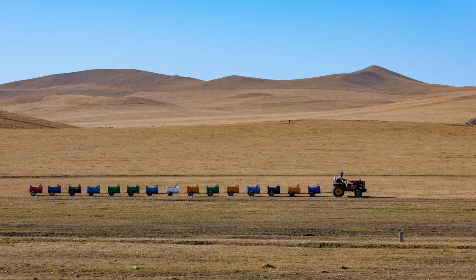 为了满足部分游客的需求,沿线也有一些游乐的点。这种用油桶简单制作成的小火车,远远看去还真有那么点文艺范儿。