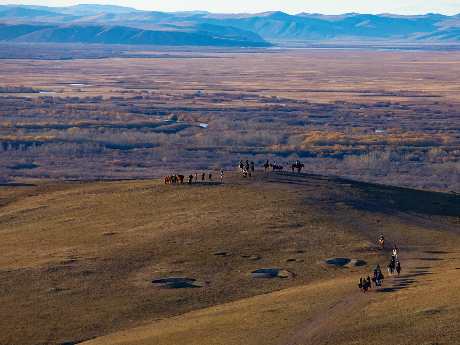 有骑马的人群,三三两两往指定的日落观景点进发。这场面让人联想起古龙或金庸的小说,一群塞外武林高手,正在展开一段可歌可泣的儿女、家国故事。