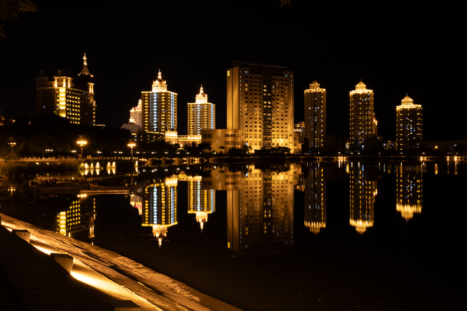 不想奔波的朋友,满洲里也就近安排了一个不错的机位:小北湖北岸。夜间的灯光效果,还是非常有诚意的!