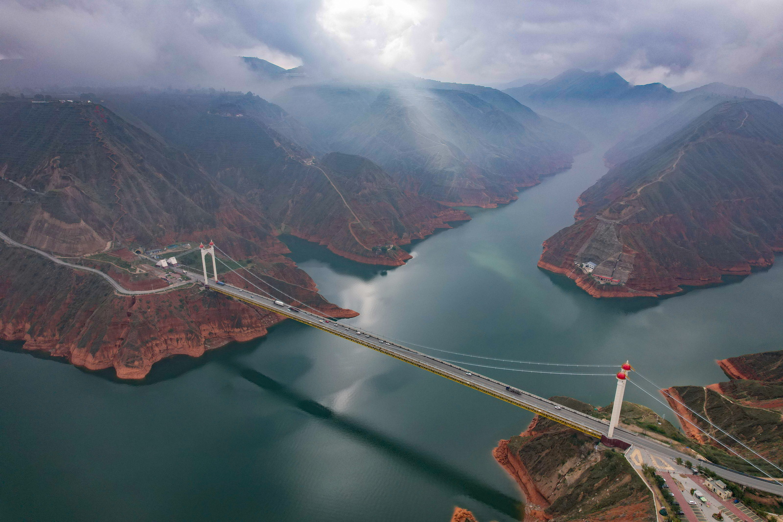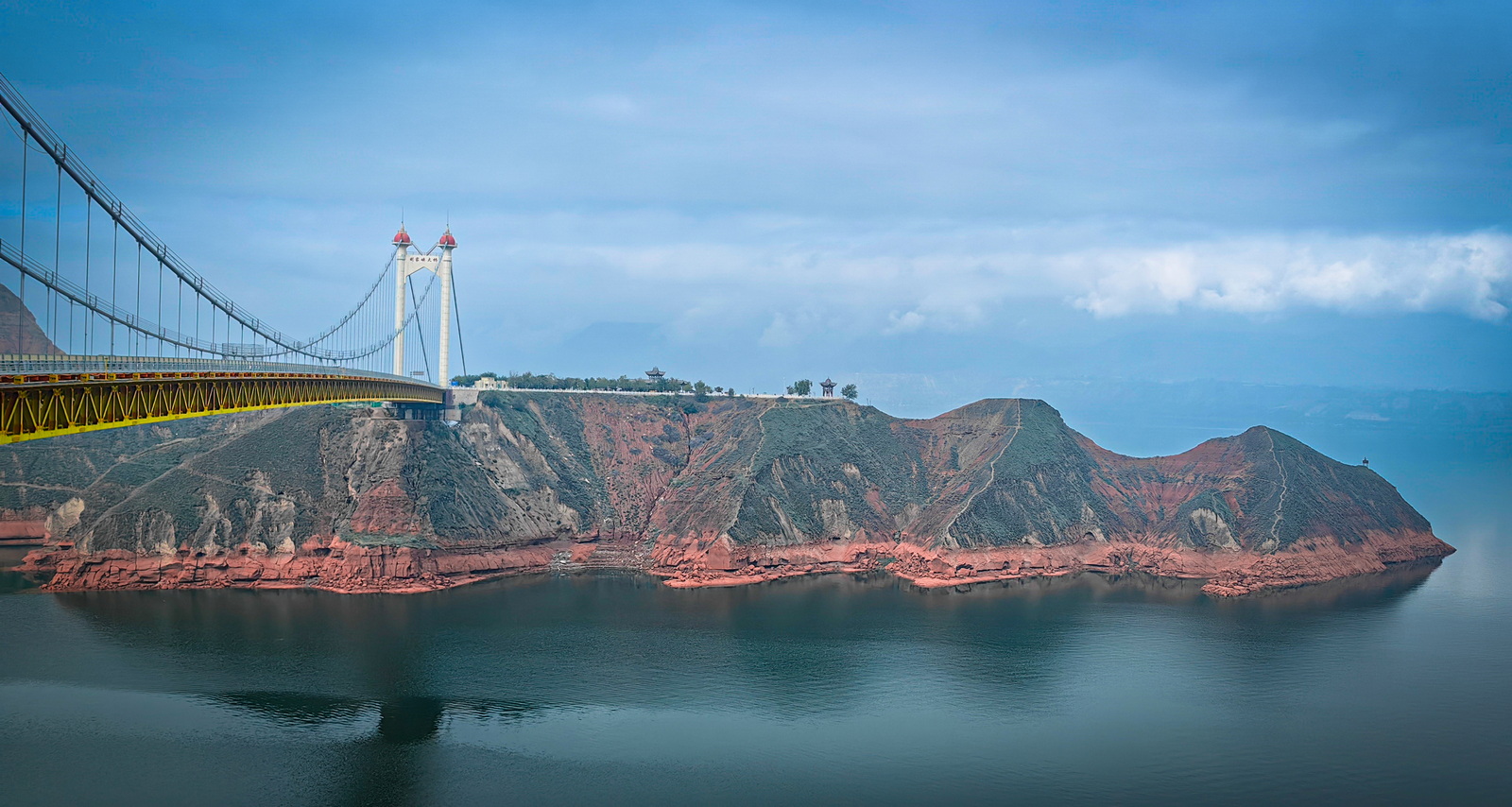 刘家峡大桥是事先就在地图上研究好的绝佳航拍点。到了地方一看,“英雄所见略同”,这里早就被打造成了一处驿站,边上甚至有令人望而生畏的木梯可以爬到山头上去。如无必要,咱是不会爬的……亲爱的无人机,“你是我的眼”,带我领略一下就好。