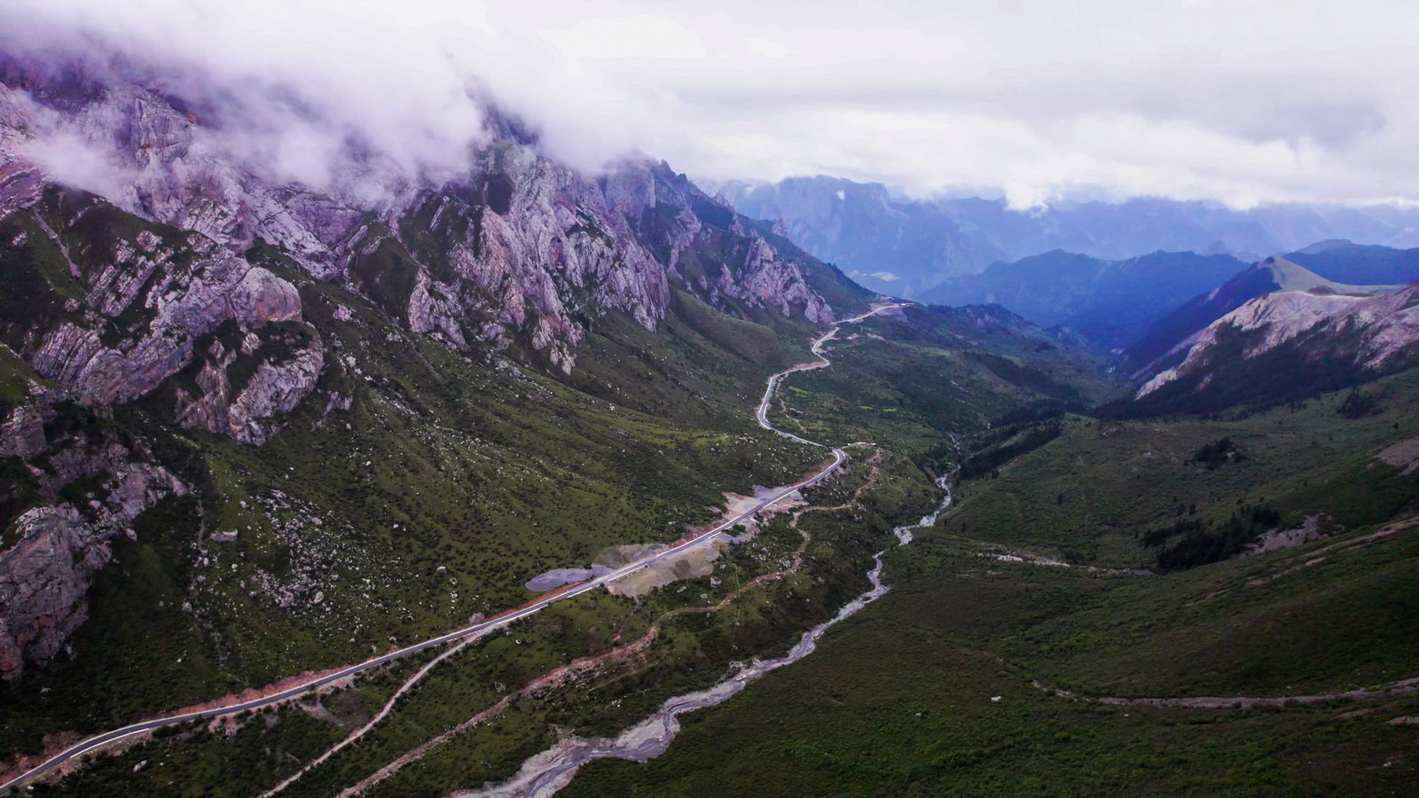 天气异常给力,厚厚的云盖封在半山腰,如临仙境。穿云当然是标准操作,无人机的镜头从云雾中穿出,再来一个转弯,柳暗花明又一村。