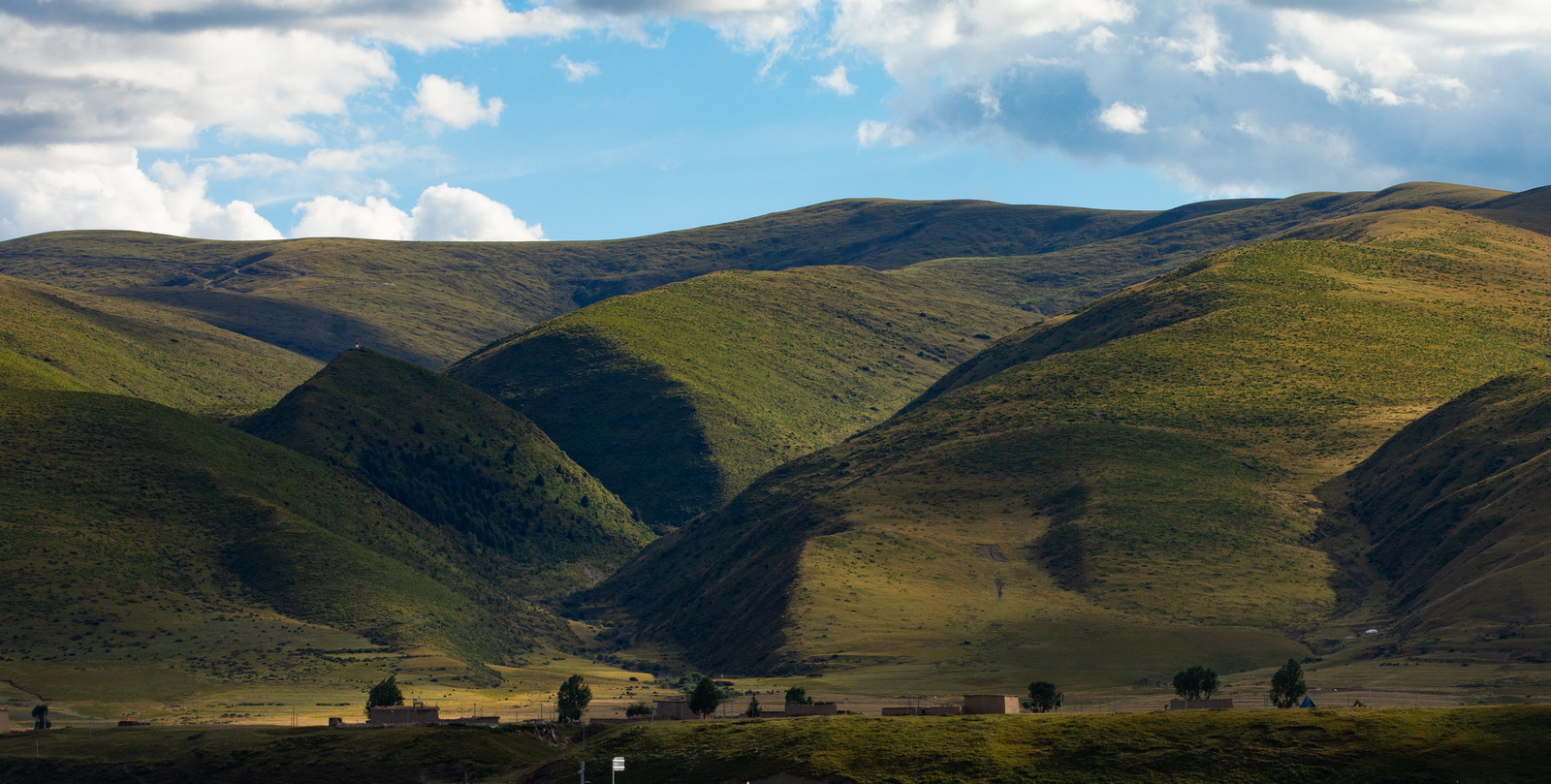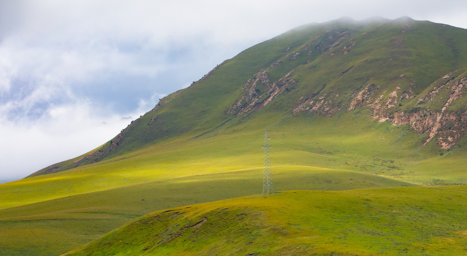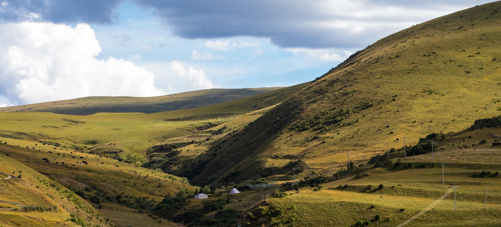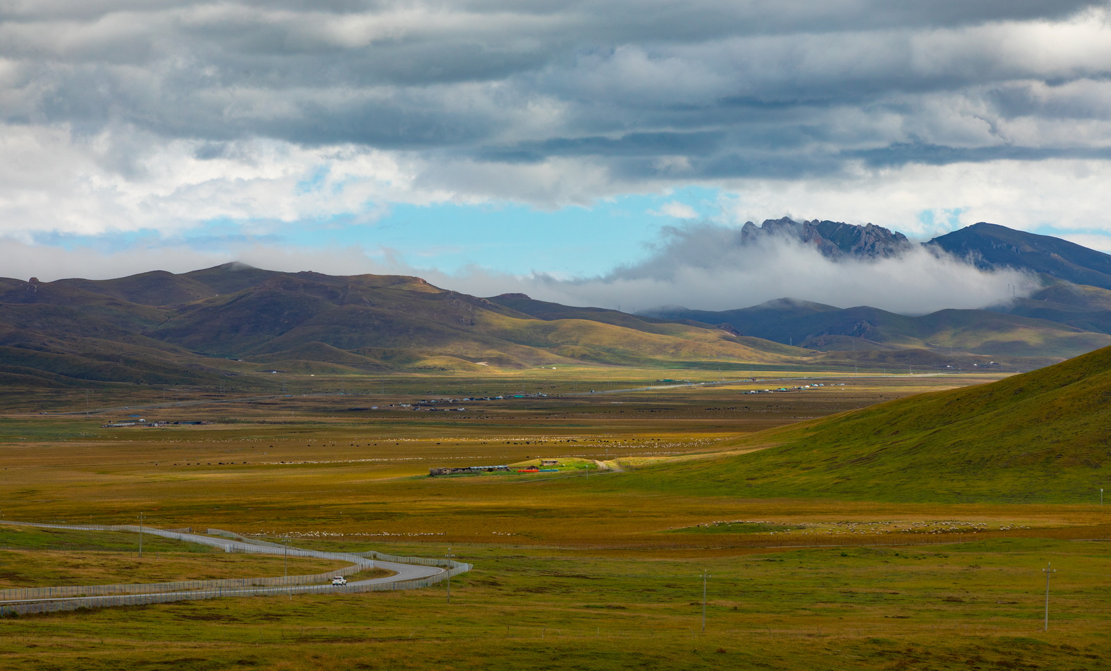 如果不是亲眼所见,你可能会怀疑网上那些草原照片的真实性。此时还是9月初,正是黄绿交替;这又是一个多云的早晨,恰好明暗相间。如此美好,让人终不至于冤枉了它。