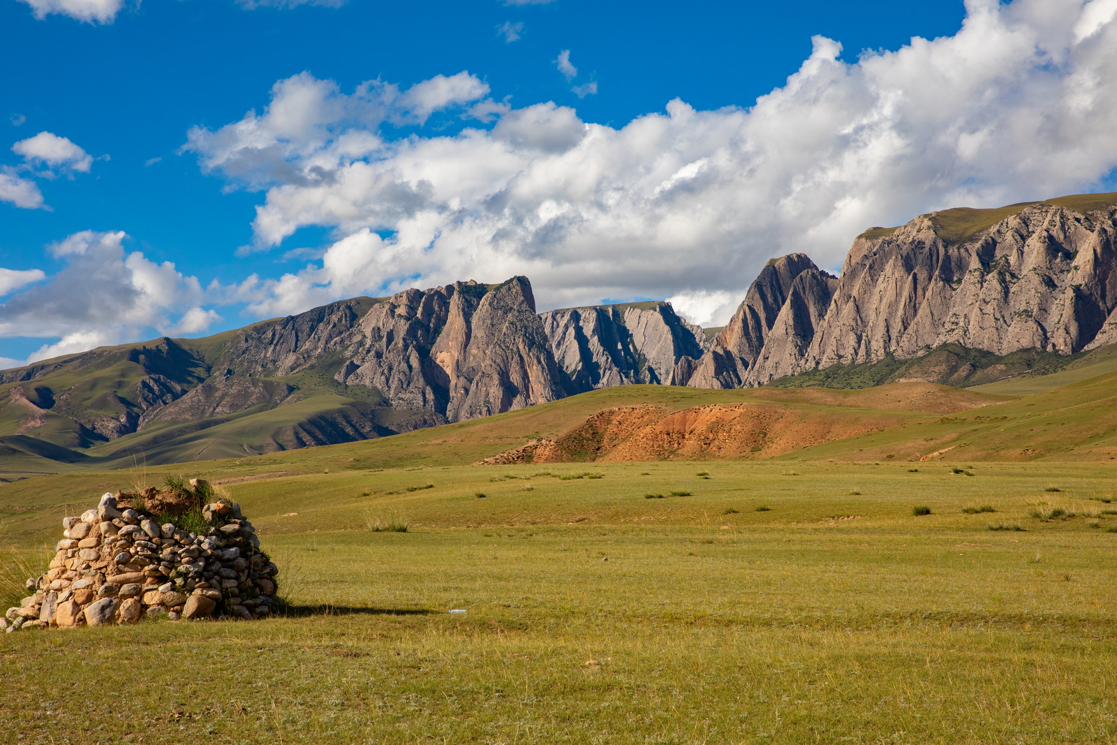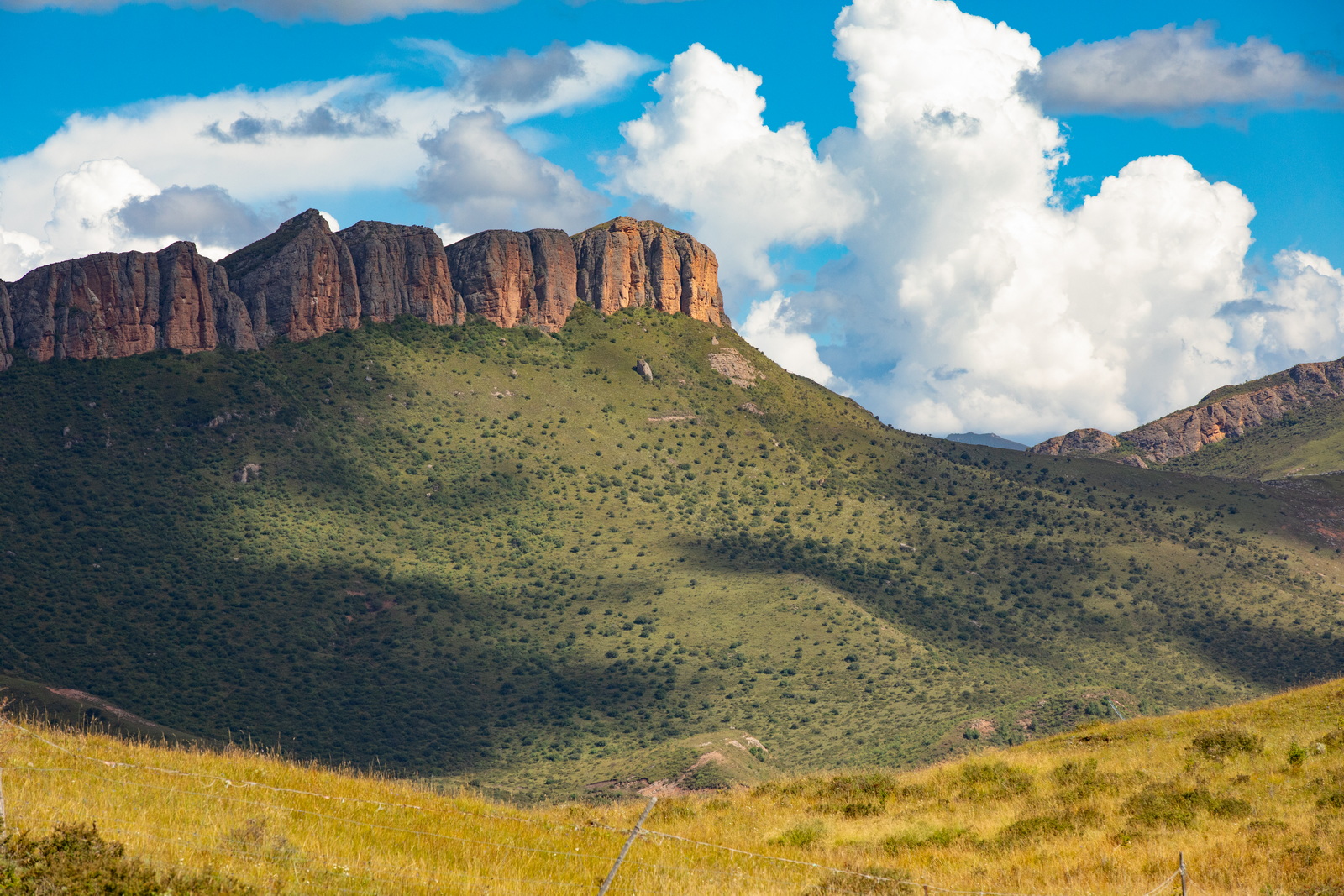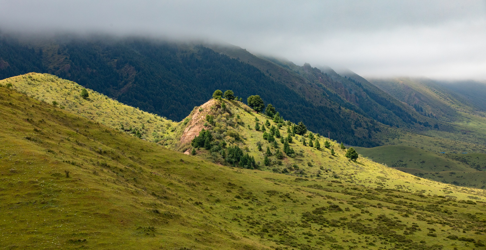 如果不是亲眼所见,你可能会怀疑网上那些草原照片的真实性。此时还是9月初,正是黄绿交替;这又是一个多云的早晨,恰好明暗相间。如此美好,让人终不至于冤枉了它。