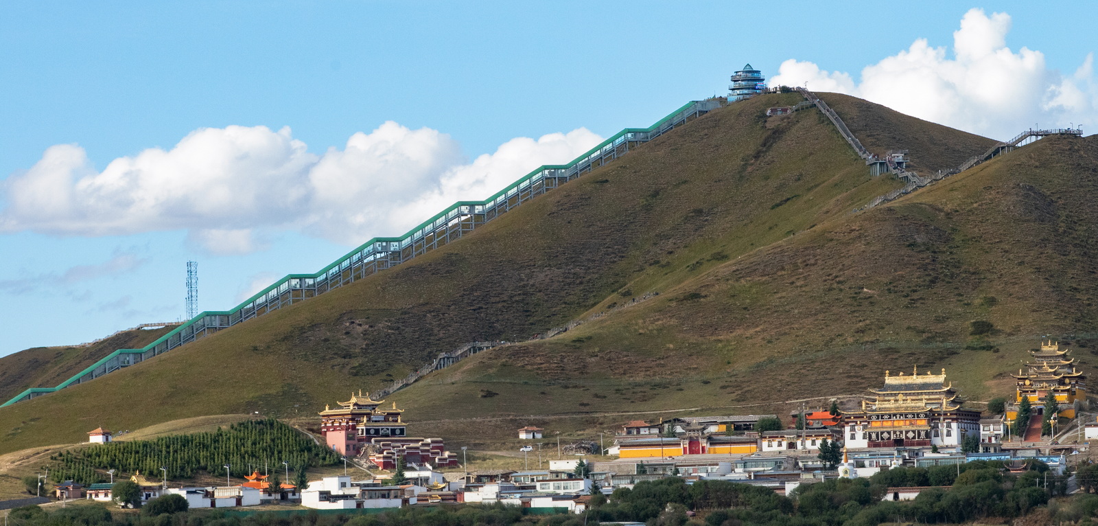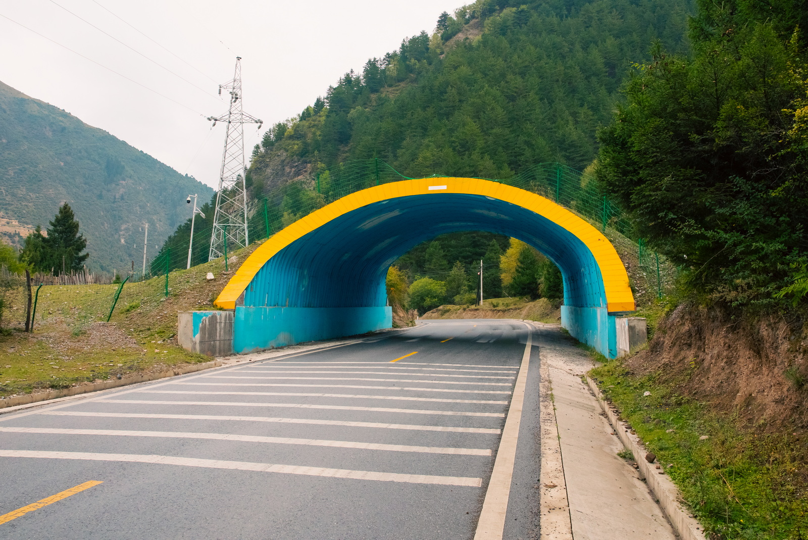 原定第二天早上的天葬台计划提前了一天,于是去扎尕那的行程变成格外宽松。天气预报有雨,随着距离越来越近,对扎尕那的期待和担心同步攀升。途中见到若干动物通道,造型颇为别致。作为交通业内人士,我爬到动物通道上进行了一番考察。通道顶坡度很陡,险些摔了个跟头,和牛羊相比,我的爬坡能力相差太远……