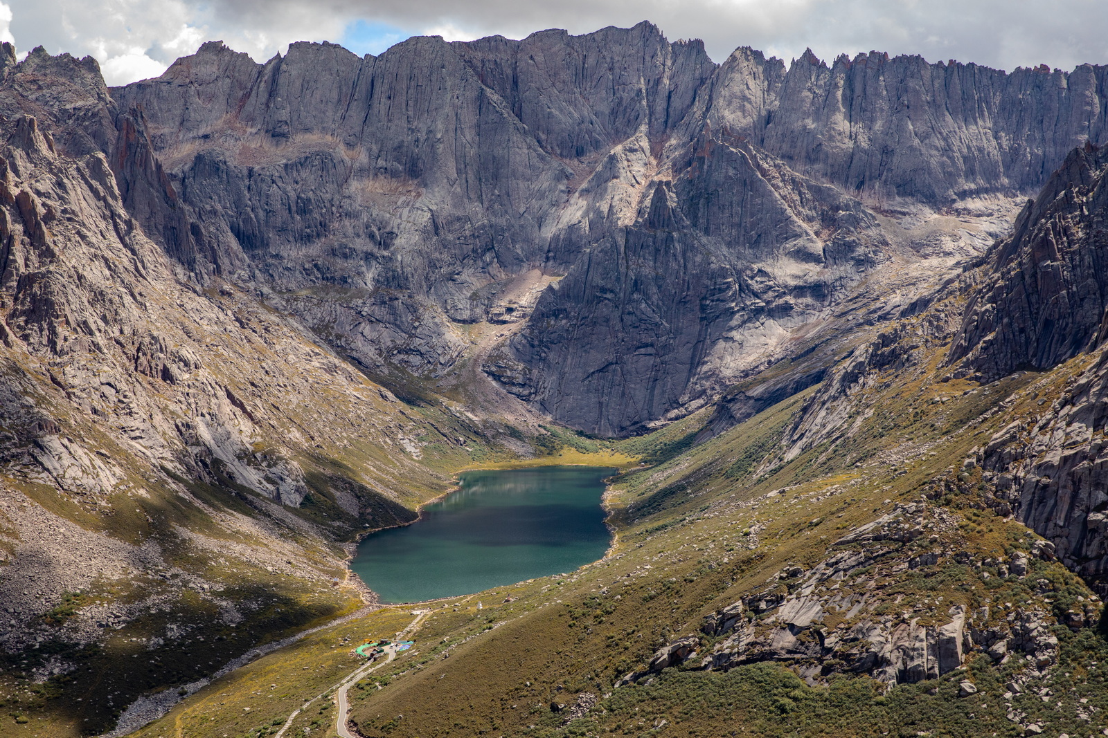 莲宝叶则开放景区的核心景点,就是这片扎尕尔措。可以选择从山下沿栈道走到湖边,也可以选择坐观光车向上走,自上而下地俯瞰。平心而论,扎尕尔措是相当美的;但理智告诉我,与莲宝叶则北部的那些“措”相比,扎尕尔措只是一个不起眼的小不点罢了。未来随着景区的进一步开发,无论如何还是要再来的。