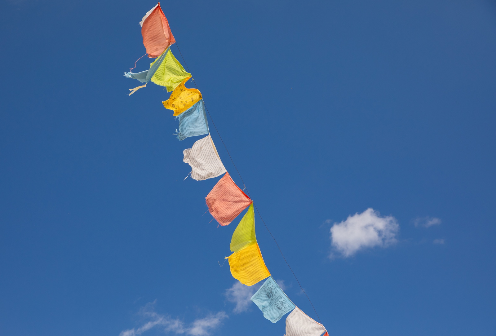 巨大的彩色经幡迎风飘扬,细细一看上面画满了经文。想起年轻天葬师的比喻:在他们看来,经幡就是纸张原件,风就是复印机,经幡通过风的吹拂,就将经文书写的愿力传播出去了。