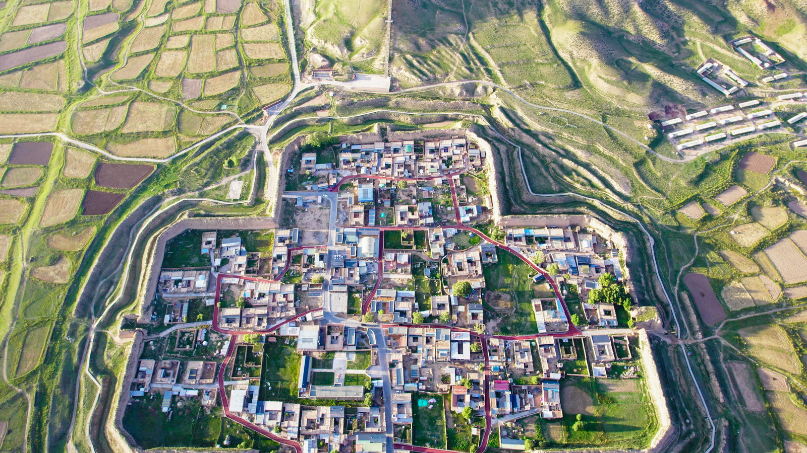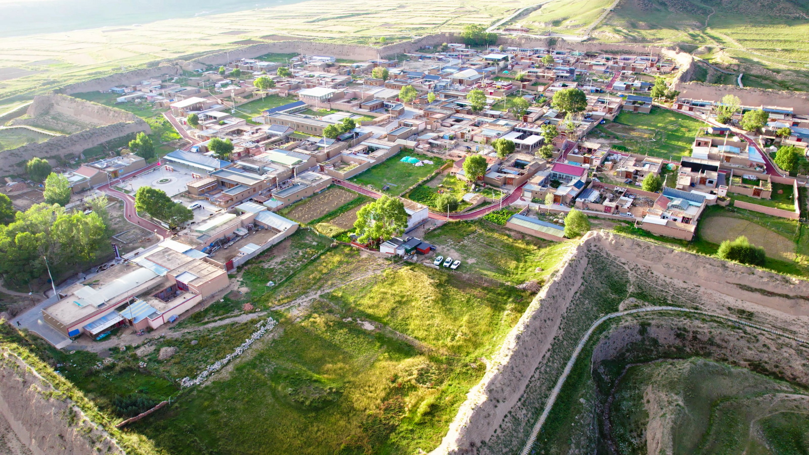 太阳快要落山,依依不舍地降下无人机,再给八角城来一个低空俯拍。这个500人的小村落,精致秀气,仿佛沧海遗珠。