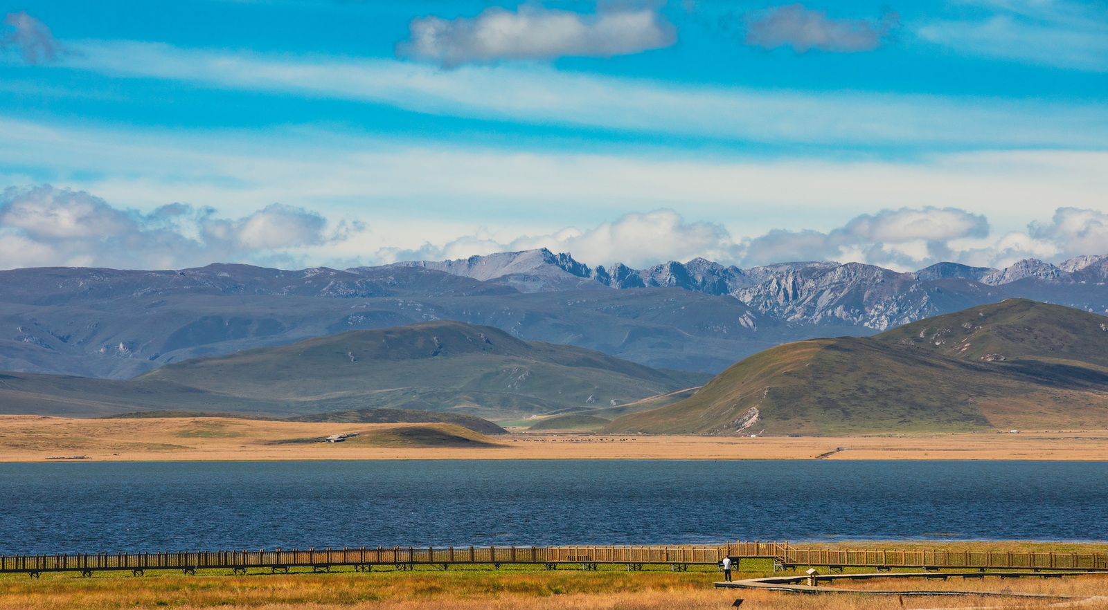 次日往郎木寺,途径尕海。尕海在网上风评不高,不过如果忽略价格因素,转一转还是不错的。这个季节湿地还是像模像样的湿地,就是鸭子和鸟们已经基本见不着了。景色略显单调,好在还有25公里外的几座高山帮衬。