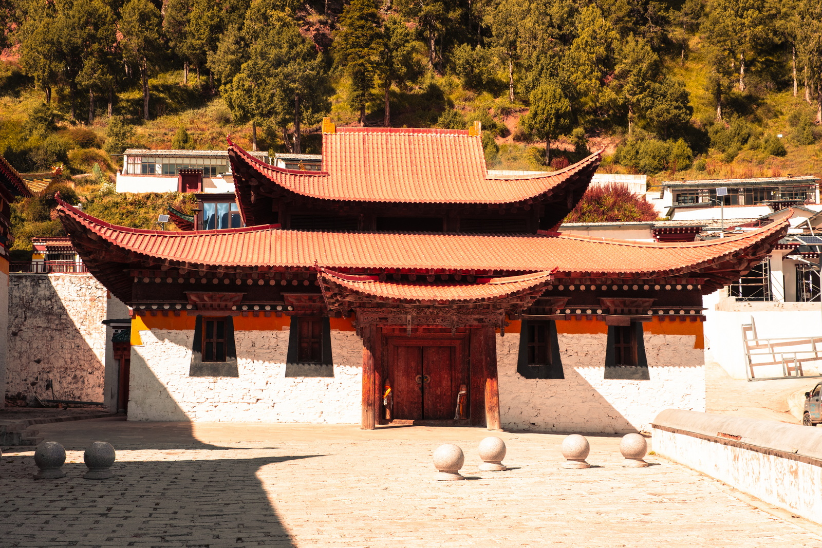 喇叭住的宿舍叫扎仓,还在不断地扩建之中。抓拍了一张开挖掘机的小哥啃玉米的画面。普通人何尝不是在修行,只是和喇嘛的方式不同罢了。