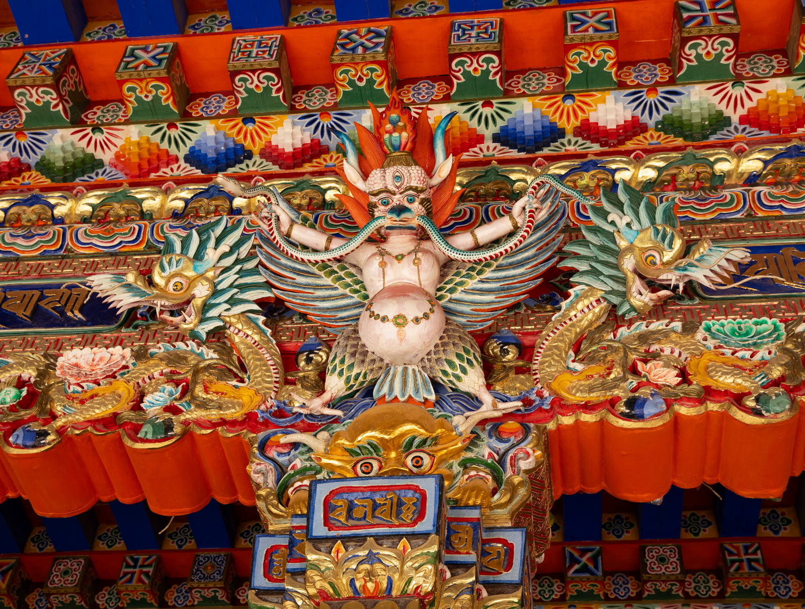 赛赤寺比拉卜楞寺宽松多了,甚少有禁止拍摄的地方。于是拍到一些难以名状的似神似妖、非蛇非鸡的形象,立足细看时,需要随时做好表情管理。